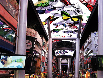 60년대부터 80년대까지 중부권의 행정과 상권, 전통문화의 메카였던 으느정이가 문화 예술의 거리로 탈바꿈했습니다. 화랑과 공연장, 전시시설등의 업소들이 입점해 있으며, 2013년에 개장한 으느정이 스카이로드는 아케이드형 스크린 시설로 길이가 무려 214m에 달하며 높이는 20m로 화려한 이벤트와 공연을 선사합니다.