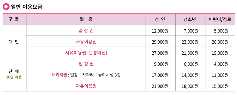 동물과 꽃 그리고 놀이시설과 새들이 있는 버드랜드까지 온가족을 만족시킬 수 있는 종합 테마 공원입니다. 119종 879수의 동물과 19개 기종의 놀이시설, 계절별로 운영되는 물놀이장과 눈썰매장까지 있으며, 사파리와 삼림욕장도 갖추고 있습니다. 나무를 이용해 만든 미로길과 물을 주제로한 정원등의 볼거리와 즐길거리가 풍성합니다.